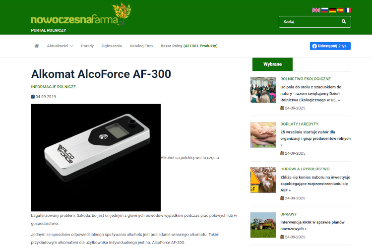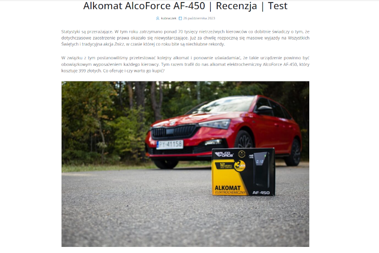Pozyskaliśmy w Internecie liczne recenzje alkomatów polskiej marki AlcoForce.
