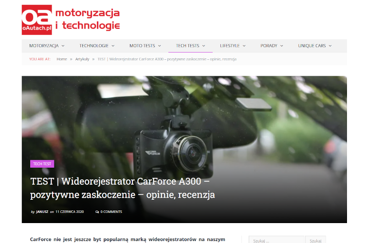 RecenzjeProduktow.pl > Recenzje wideorejestratorów CarForce 2024-08-22 Recenzje wideorejestratorów CarForceRecenzjami wsparliśmy wejście na polski rynek nowej marki widorejestratorów CarForce.CarForce to polska marka kamerek samochodowych o prostej obsłudze i przystępnej cenie.